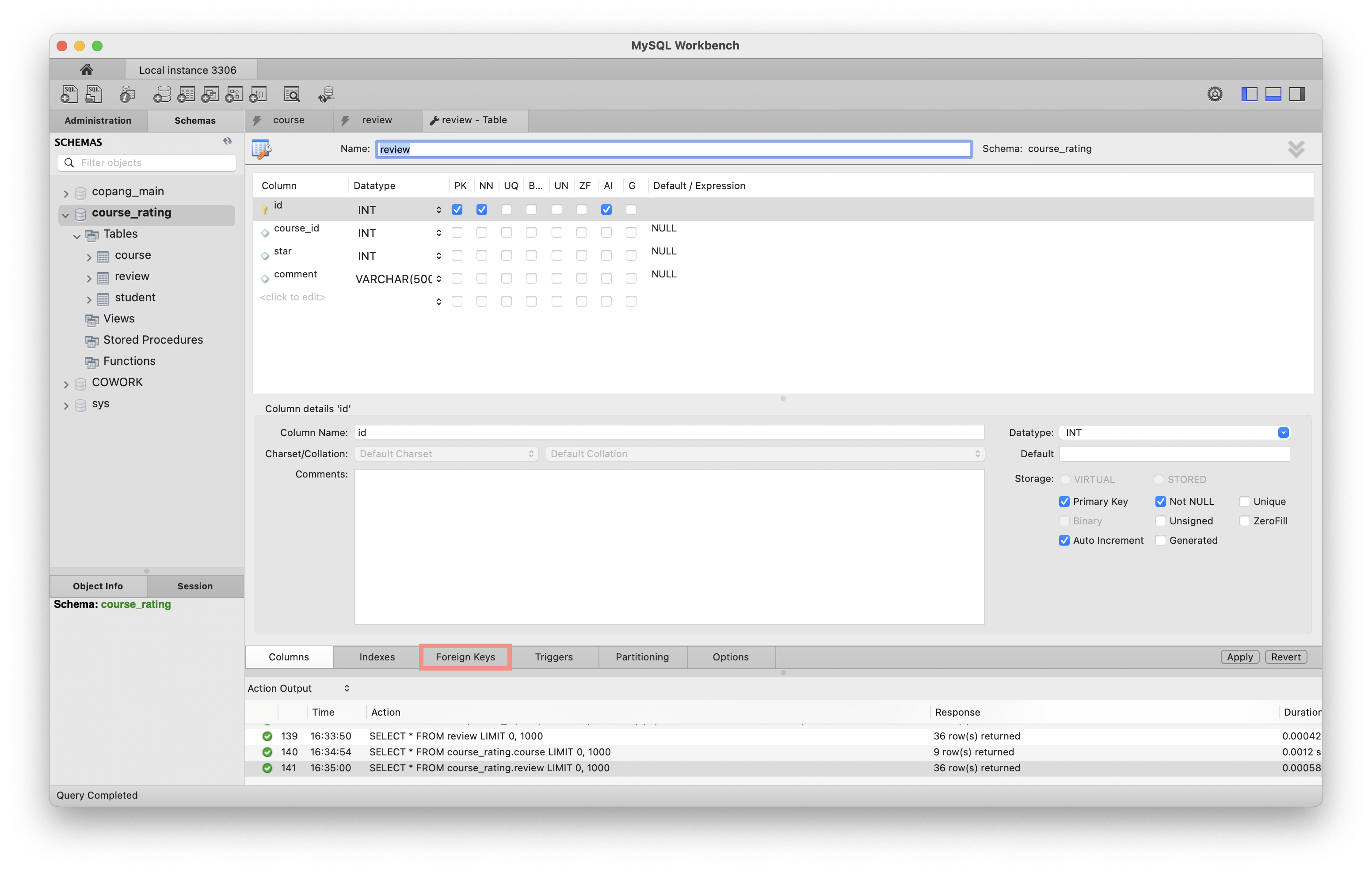 테이블 설정에서 하단에 Foreign keys를 누른다