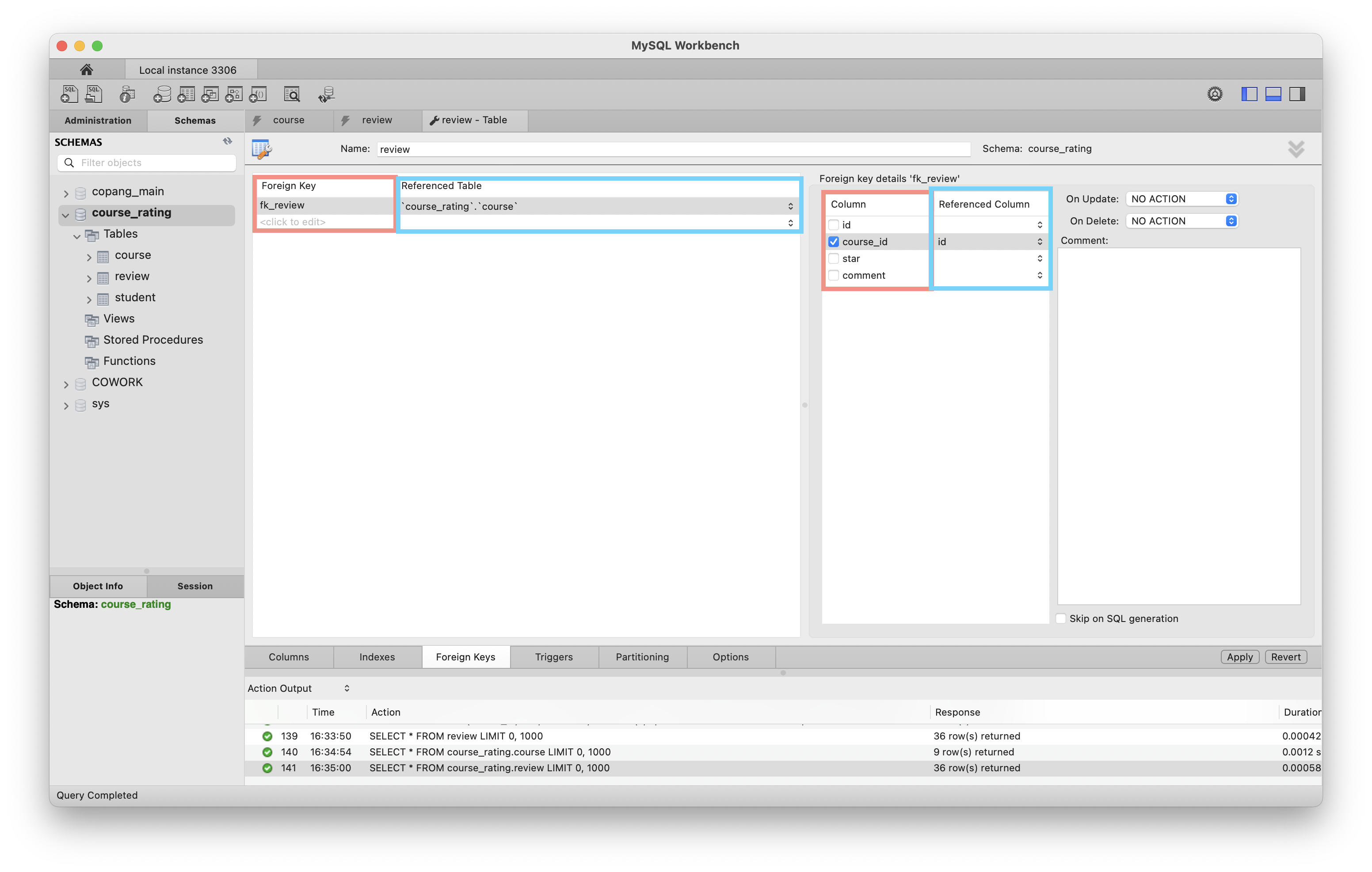 참조하는 컬럼 선택, 참조 당하는 컬럼 선택