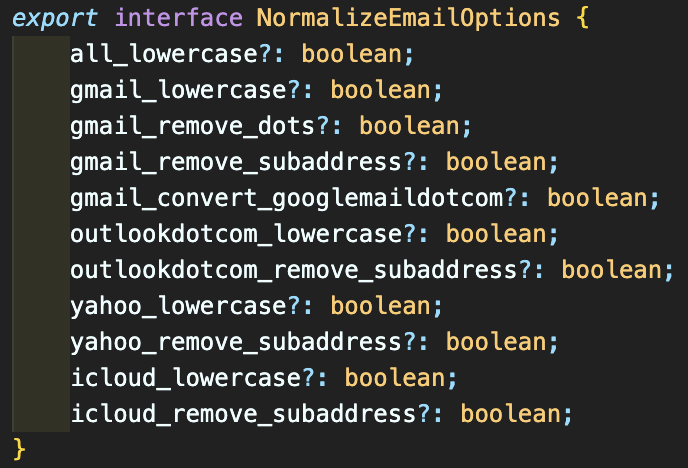 더보기: normalizeEmail()은 Google, Outlook, Yahoo, iCloud에 대해서 다음과 같은 변환을 수행한다.